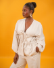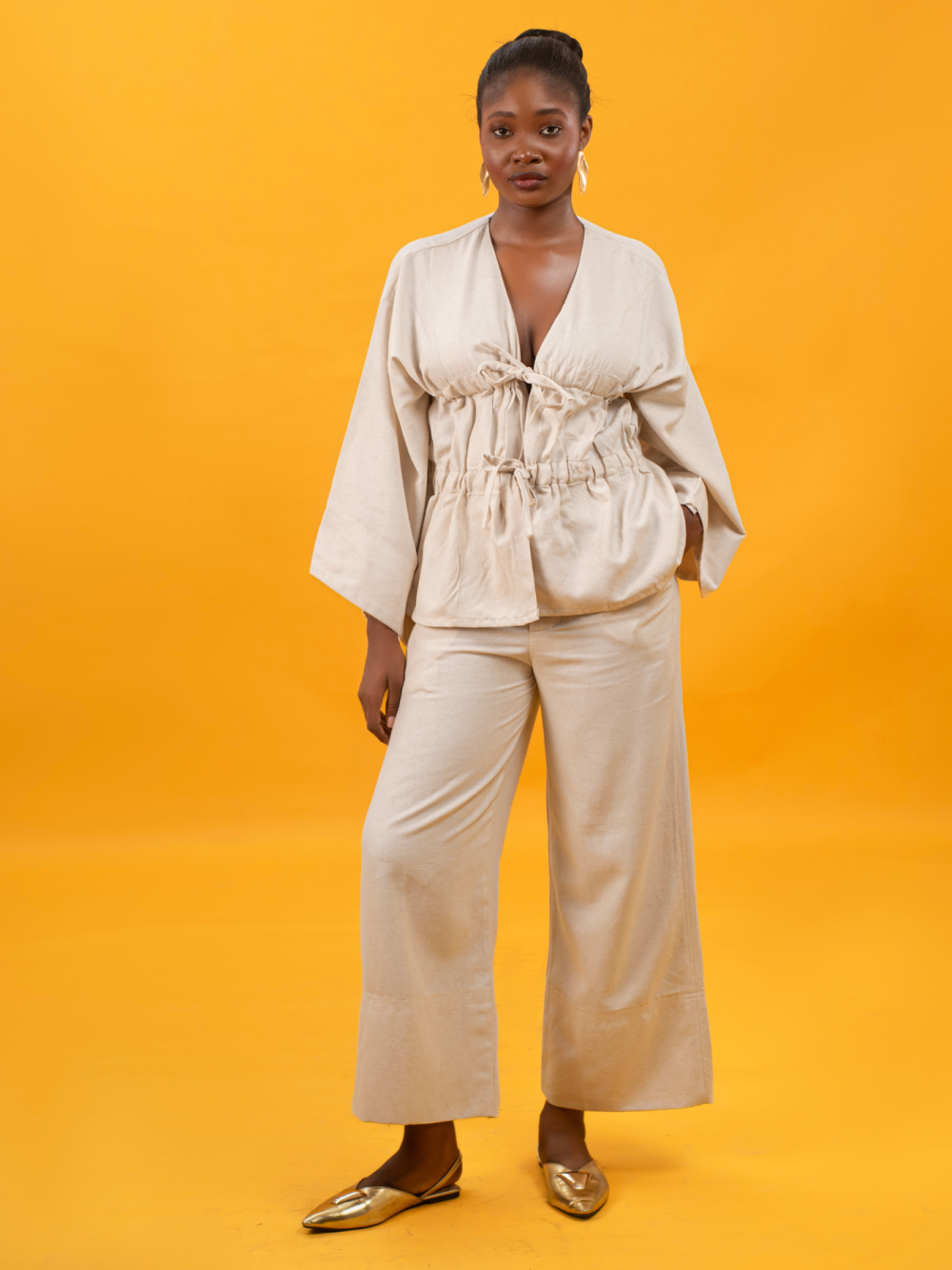 The safari style wide-leg trousers are crafted has a relaxed, flowing silhouette offering a flattering fit, making them a versatile addition to any wardrobe. Designed with a high waist, these trousers elongate the legs while providing ease of movement. Perfect for pairing with the Bowie Blouse